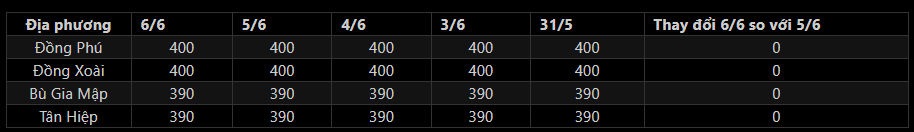 Giá thu mua Mủ nước tại Bình Phước, đồng/độ