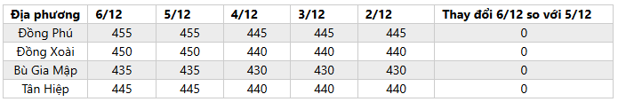 - Giá mủ nước và mủ chén thu mua tại Bình Phước không đổi.