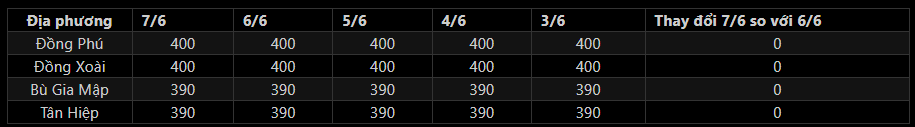 - Giá mủ nước thu mua tại Bình Phước không đổi so với hôm trước.