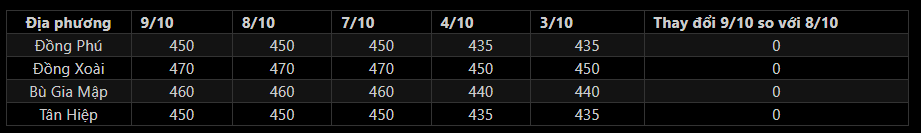 - Giá mủ nước thu mua tại Bình Phước tiếp tục không đổi, trong khi giá mủ chén tạm chững so với hôm trước.