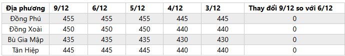 - Giá mủ nước và mủ chén thu mua tại Bình Phước tiếp tục không đổi.