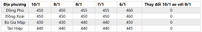 - Giá mủ nước và mủ chén thu mua tại Bình Phước không đổi.