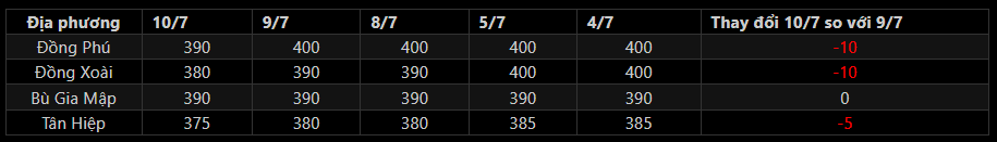 - Giá mủ nước thu mua tại Bình Phước giảm.