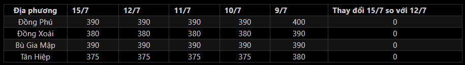 - Giá mủ nước thu mua tại Bình Phước giữ ổn định trong đầu tuần này.