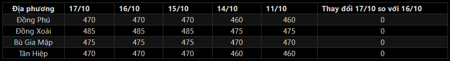 - Giá mủ nước và mủ chén thu mua tại Bình Phước tiếp tục không đổi.