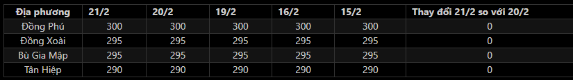 - Giá mủ nước thu mua tại Bình Phước không đổi.