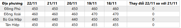 - Giá mủ nước và mủ chén thu mua tại Bình Phước tiếp tục không đổi.