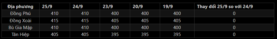 - Giá mủ nước thu mua tại Bình Phước không đổi so với hôm trước.