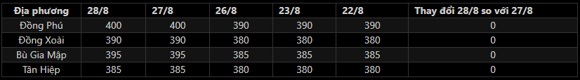 - Giá mủ nước thu mua tại Bình Phước không đổi.