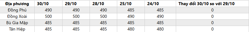 - Giá mủ nước và mủ chén thu mua tại Bình Phước tiếp tục không đổi.