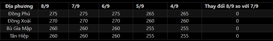 Giá thu mua Mủ nước tại Bình Phước, đồng/độ