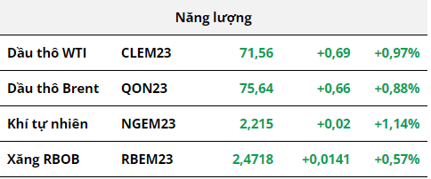 Trên thị trường năng lượng, giá dầu tiếp tục diễn biến giằng co khi nỗi lo thâm hụt nguồn cung hạn chế ảnh hưởng đến từ nhu cầu tiêu thụ suy yếu bên cạnh sức ép vĩ mô. Các nhà phân tích dự báo tình trạng thâm hụt nguồn cung đang gia tăng trong nửa cuối năm nay ngay cả khi Bộ trưởng dầu mỏ Iraq Hayan Abdel-Ghani phát biểu rằng ông không mong đợi OPEC+ sẽ quyết định cắt giảm sản lượng hơn nữa trong cuộc họp vào tháng 6 tới. Thị trường cũng đã nhận được sự hỗ trợ sau khi Bộ trưởng Năng lượng Hoa Kỳ Jennifer Granholm thông báo rằng nước này có thể mua lại dầu cho kho Dự trữ Dầu mỏ Chiến lược (SPR) trong tháng 6 tới.