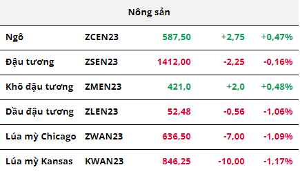 Trong phiên tối, các mặt hàng nhóm nông sản đang diễn biến trái chiều. Giá ngô đang được hỗ trợ sau báo cáo hàng tuần của Cơ quan Quản lý Thông tin Năng lượng Hoa Kỳ (EIA). Cụ thể, tồn kho ethanol của Mỹ đã ghi nhận tuần thứ 4 liên tiếp sụt giảm, về mức 23291 nghìn thùng. Điều này dự kiến sẽ là động lực để các nhà máy đẩy mạnh sản xuất, từ đó tác động "bullish" đến giá ngô trong tối nay.