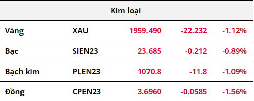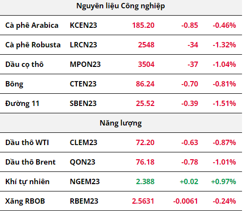Trên thị trường năng lượng, cả 2 mặt hàng dầu thô đều ghi nhận giảm giá, cụ thể, giá dầu thô WTI giảm 0,87% xuống còn 72,2 USD/thùng và giá dầu thô Brent giảm 1,01% xuống mức 76,18 USD/thùng. Những dữ liệu tích cực từ thị trường việc làm có thể tạo ra không gian cho Cục Dự trữ Liên bang Mỹ (Fed) tăng lãi suất trong thời gian tới. Bên cạnh đó, Chủ tịch Fed bang Dallas, thành viên của FOMC, bà Lorie Logan phát biểu vào ngày 18/05 rằng lạm phát vẫn đang “quá cao” và chưa hạ nhiệt đủ nhanh để Fed tạm dừng chu kỳ tăng lãi suất trong tháng 06/2023.