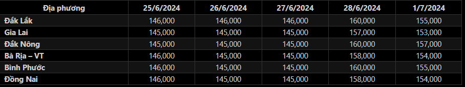 Bình Phước và Đắk Lắk cùng ghi nhận mức giao dịch chung là 155,000 đ/kg, đồng loạt tăng 3,000 đ/kg so với cuối tuần trước.