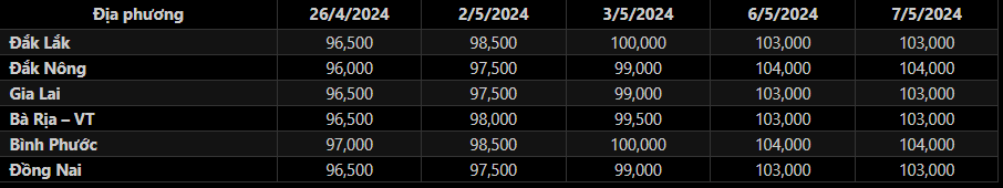 Giá tiêu tại Gia Lai, Đắk Lắk, Bà Rịa – Vũng Tàu và Đồng Nai cùng giao dịch ở mức 103,000 đ/kg. Đây là những địa phương ghi nhận mức giá tiêu thấp nhất toàn vùng.