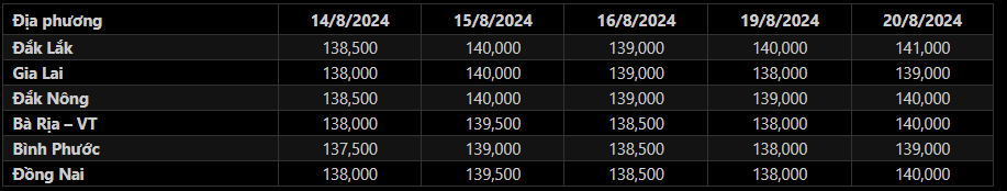 Sáng 20/8/2024, giá tiêu đen xô thu mua tại đại lý ở Tây Nguyên và Đông Nam Bộ đồng loạt tăng 1,000-2,000 đ/kg tại hầu hết địa phương so với sáng hôm qua, mặt bằng giá tiêu trung bình tại các địa bàn trọng điểm neo quanh khoảng 139,000-141,000 đồng/kg. Trong đó: