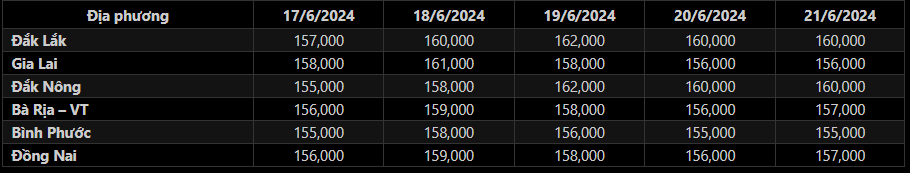 Sáng 21/6/2024, giá tiêu đen xô thu mua tại đại lý ở Tây Nguyên và Đông Nam Bộ hầu hết bình ổn, chỉ tăng nhẹ ở một vài địa phương. Theo đó, giá tiêu tại các địa phương trong nước hôm nay ghi nhận giao dịch quanh mức 157,000-160,000 đ/kg. Trong đó: