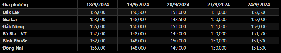 Giá tiêu tại các tỉnh trọng điểm Đông Nam Bộ là Bình Phước, Bà Rịa – VT và Đồng Nai cùng tăng 1,500 đ/kg so với hôm qua lên mức 151,500 đ/kg.