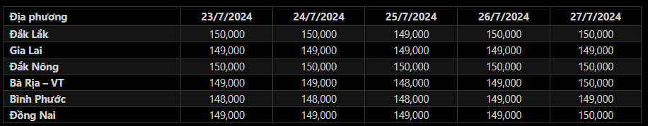 Trong khi đó, giá tiêu tại Gia Lai và Bình Phước tiếp tục duy trì mức 149,000 đ/kg.