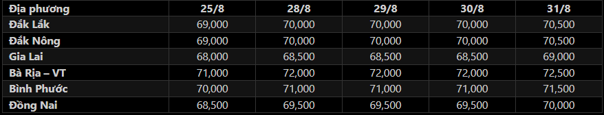 Sáng nay (31/8), giá tiêu đen xô thu mua tại đại lý ở một số khu vực trọng điểm Tây Nguyên đồng loạt TĂNG 500 đ/kg trước kỳ nghỉ lễ tại hầu hết địa phương so với ngày hôm qua. Giá tiêu toàn khu vực giao dịch trong khoảng 69,000-72,500 đ/kg. Trong đó: