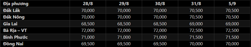 Sáng nay (5/9), giá tiêu đen xô thu mua tại đại lý ở một số khu vực trọng điểm Tây Nguyên tiếp tục dao động trong khoảng 69,000-72,500 đ/kg. Trong đó: