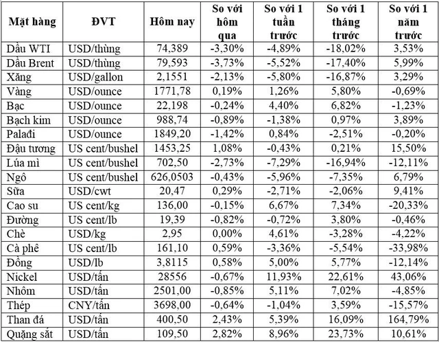 Giá một số mặt hàng chủ chốt sáng ngày 07/12