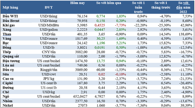Kết thúc phiên, giá dầu Brent tăng 19 cent, tương đương 0,2%, lên 79,99 USD/thùng trong khi dầu thô Tây Texas Mỹ (WTI) tăng 90 cent ở mức 76,09 USD/thùng.