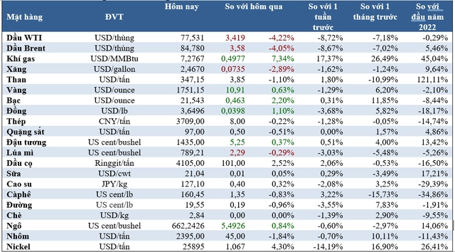 Giá dầu Brent giao tháng 1 giảm 2,95 USD, tương đương 3,3% xuống 85,41 USD/thùng; dầu Tây Texas (WTI) của Mỹ giảm 3,01 USD, tương đương 3,7% xuống 77,94 USD/thùng.