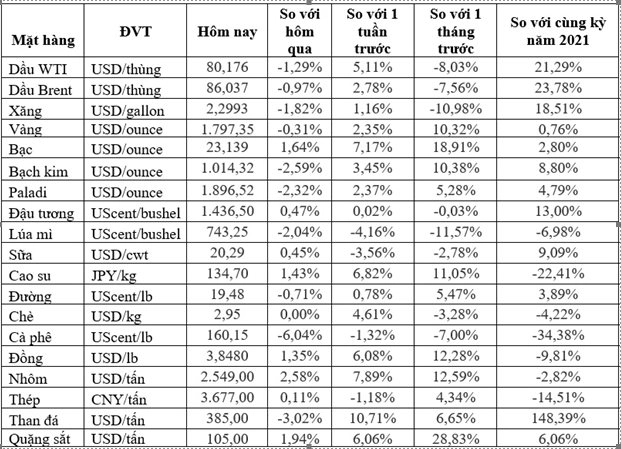 Giá một số mặt hàng chủ chốt sáng ngày 3/12: