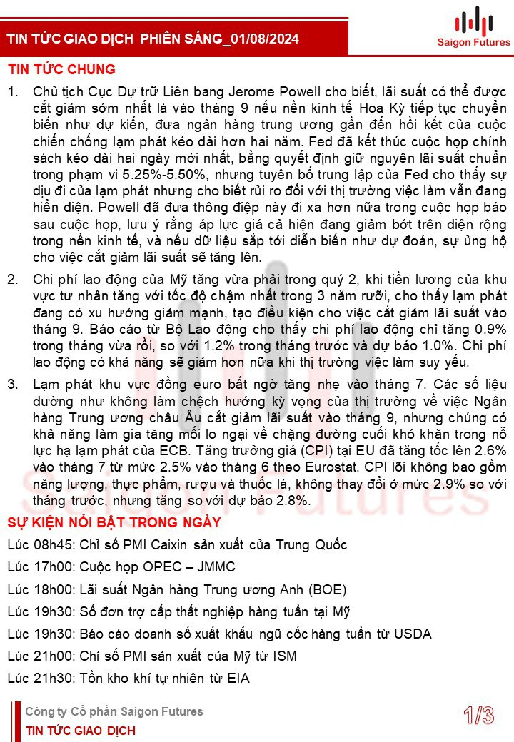 Tin tức Buổi sáng được Saigon Futures tổng hợp gồm: