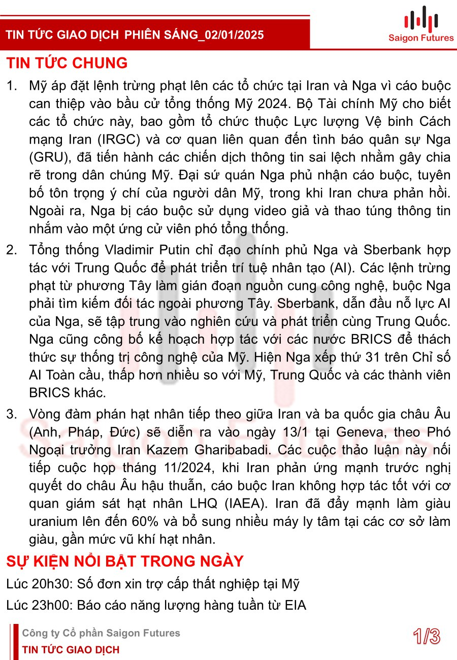 Tin tức Buổi sáng được Saigon Futures tổng hợp gồm: