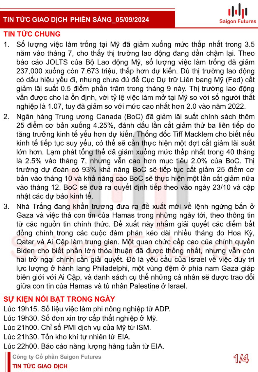 Tin tức Buổi sáng được Saigon Futures tổng hợp gồm: