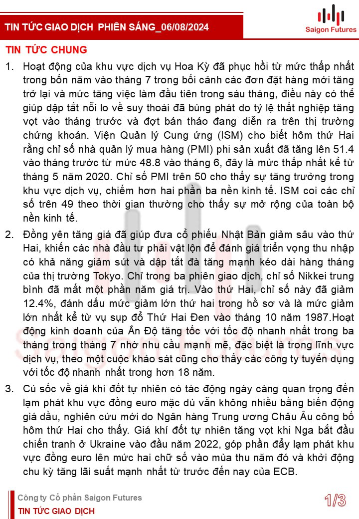 Tin tức Buổi sáng được Saigon Futures tổng hợp gồm: