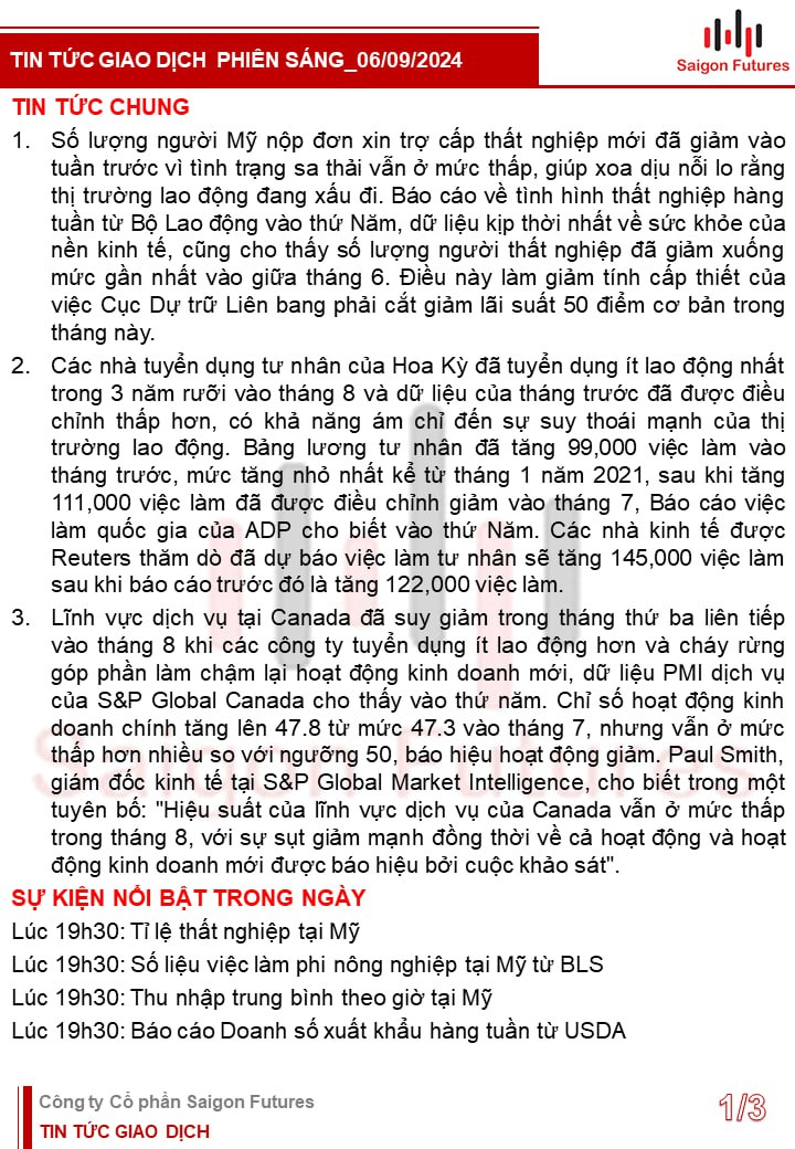 Tin tức Buổi sáng được Saigon Futures tổng hợp gồm: