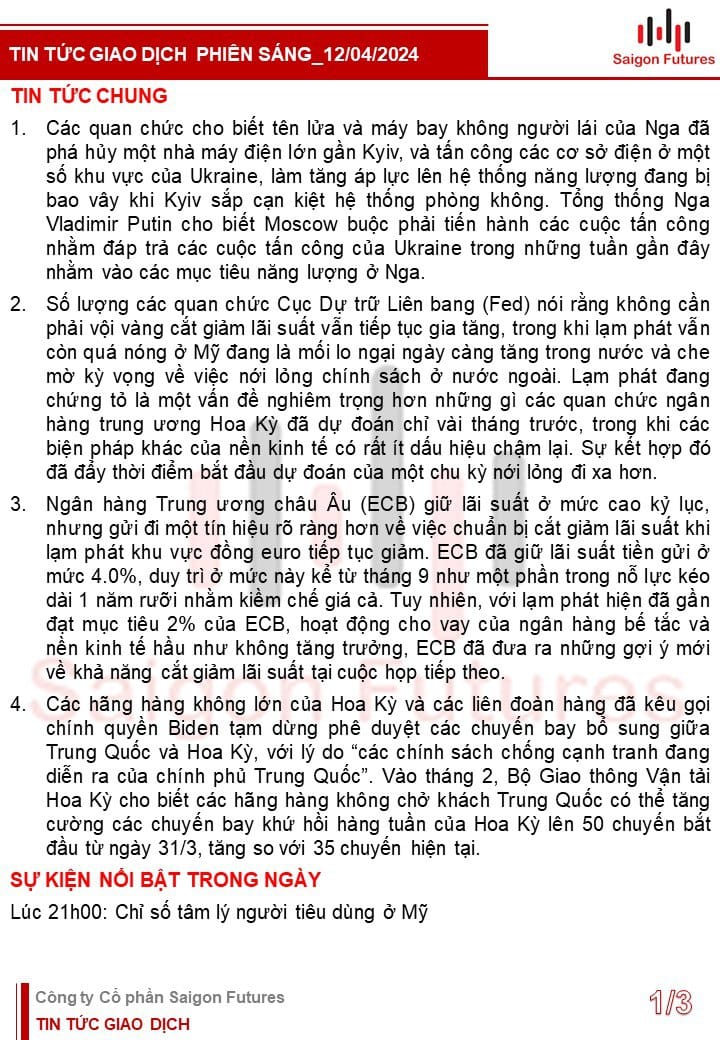 Tin tức Buổi sáng được Saigon Futures tổng hợp gồm: