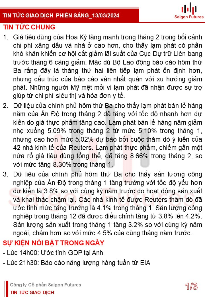 Tin tức Buổi sáng được Saigon Futures tổng hợp gồm: