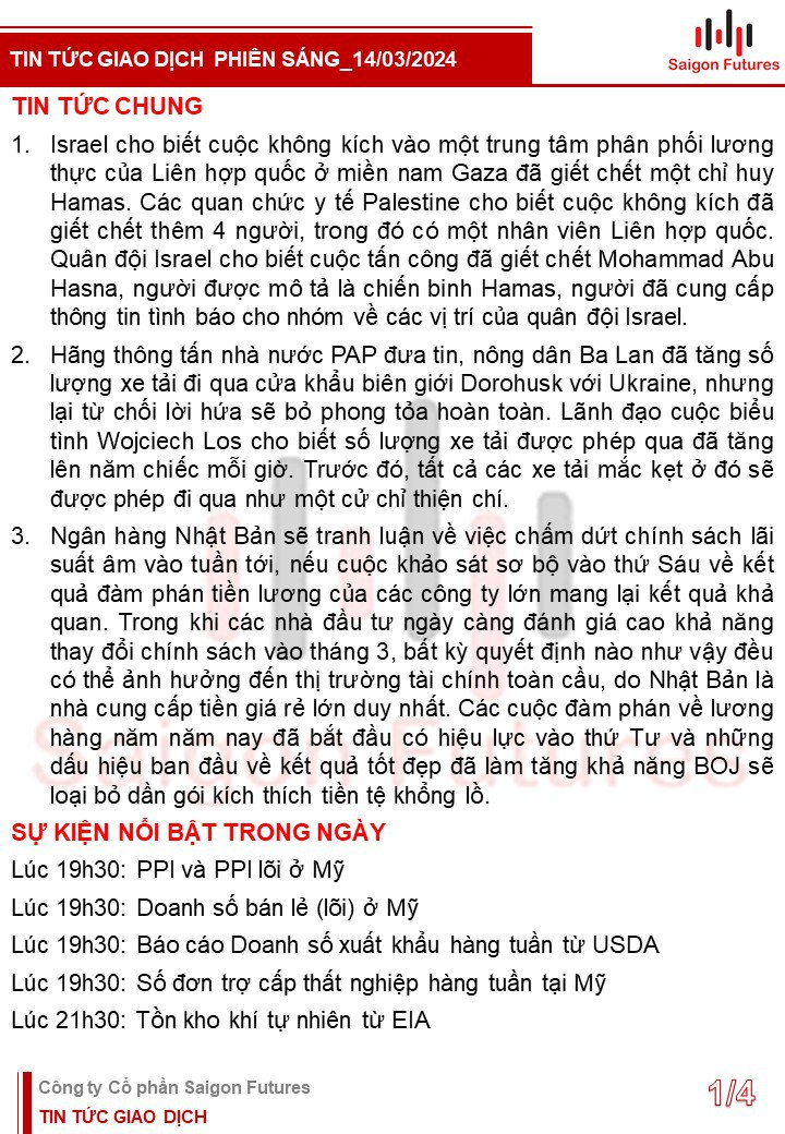 Tin tức Buổi sáng được Saigon Futures tổng hợp gồm: