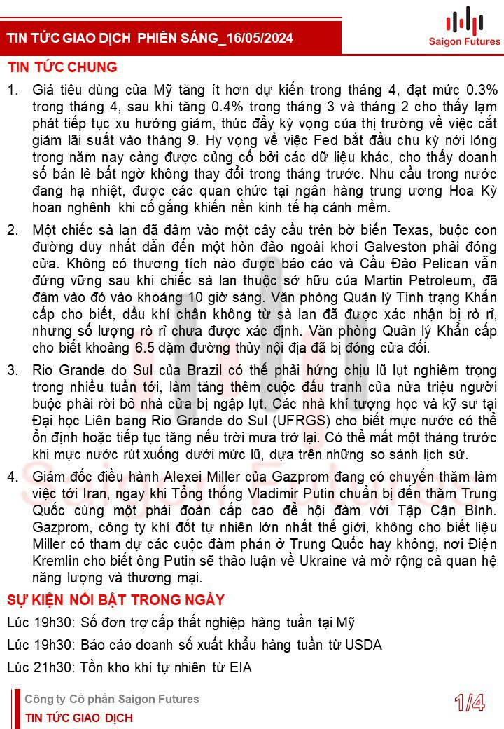 Tin tức Buổi sáng được Saigon Futures tổng hợp gồm: