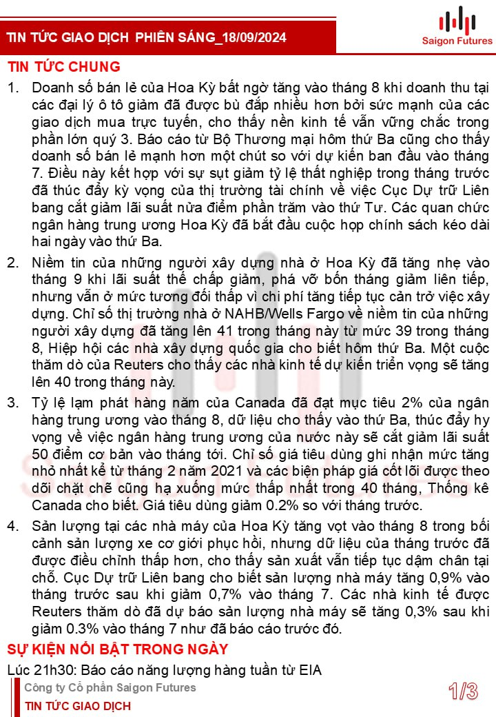 Tin tức Buổi sáng được Saigon Futures tổng hợp gồm: