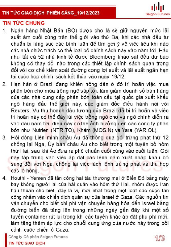 Tin tức nhóm Nông sản (For Subcriber)