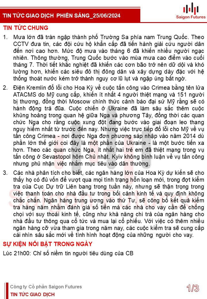 Tin tức Buổi sáng được Saigon Futures tổng hợp gồm: