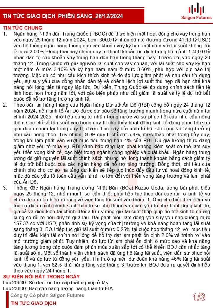 Tin tức Buổi sáng được Saigon Futures tổng hợp gồm: