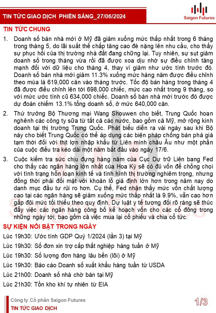 Tin tức Buổi sáng được Saigon Futures tổng hợp gồm: