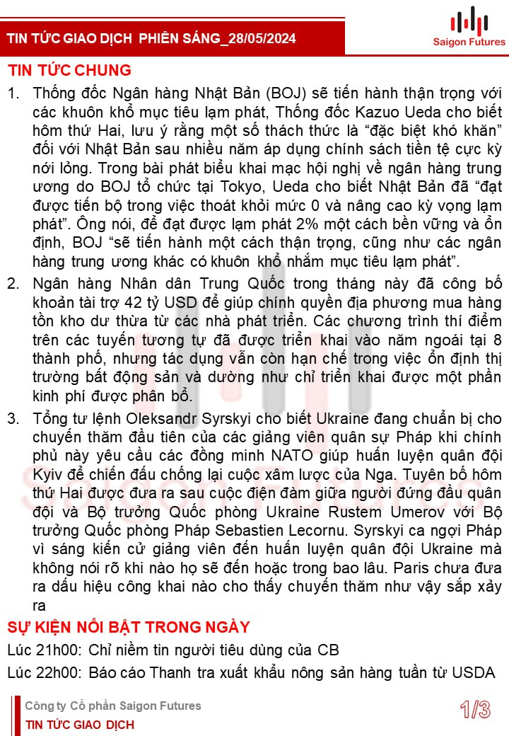 Tin tức Buổi sáng được Saigon Futures tổng hợp gồm: