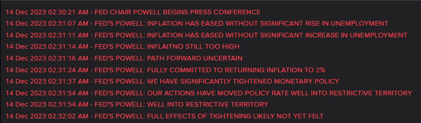 - Tổng hợp toàn văn bài phát biểu chủ tịch FED - Powell vào thứ Tư (ngày 13/12/2023).