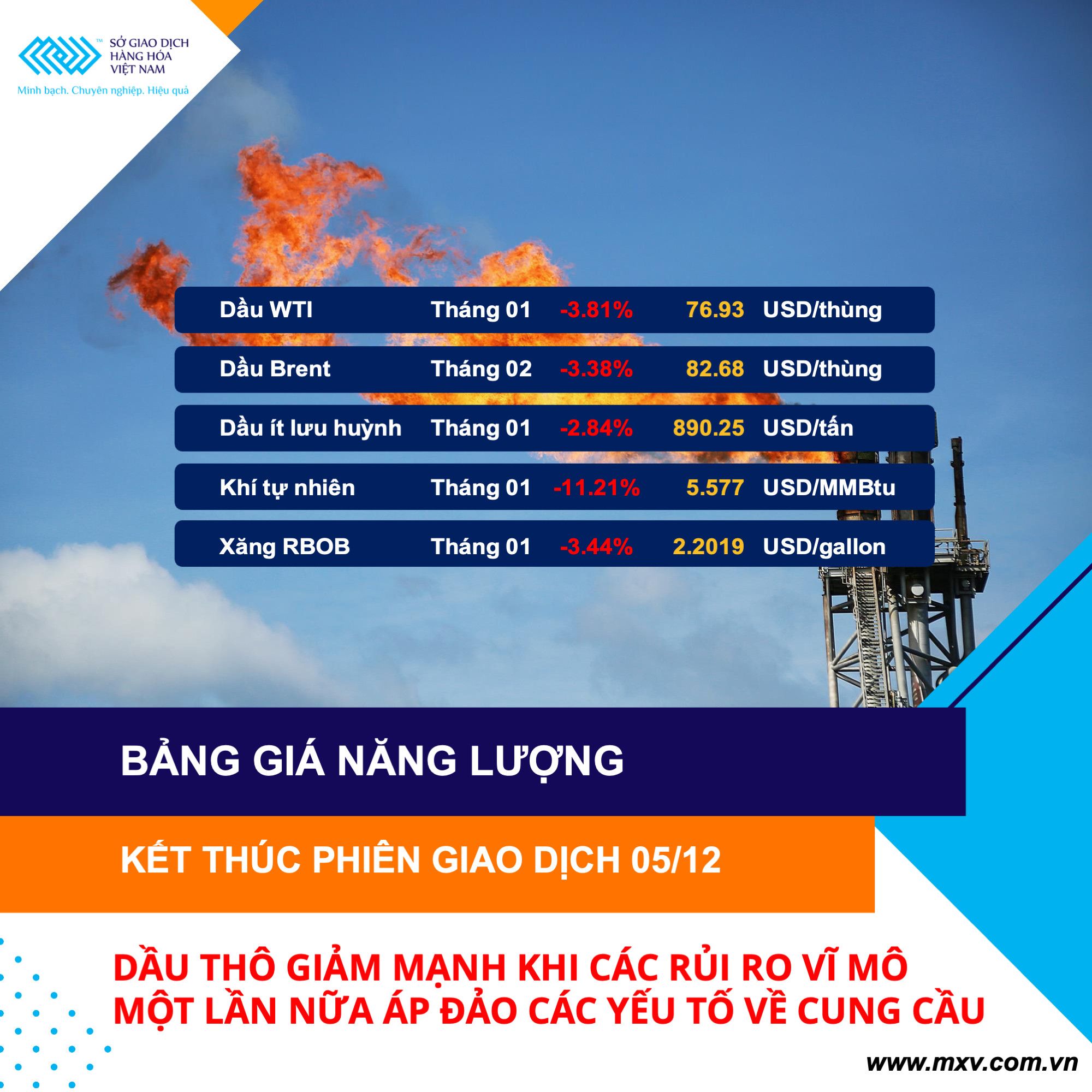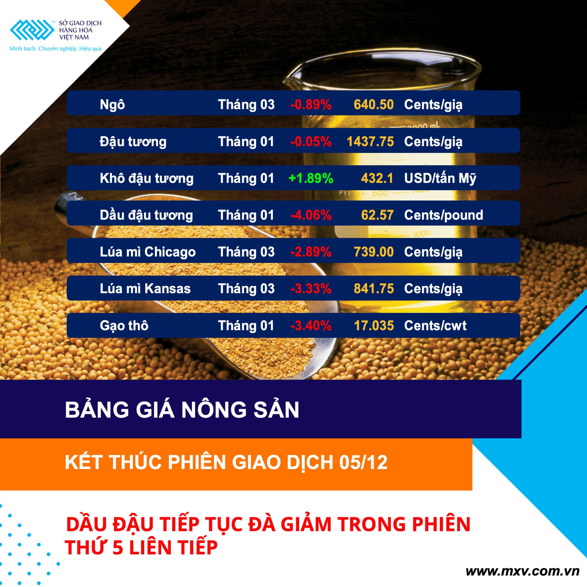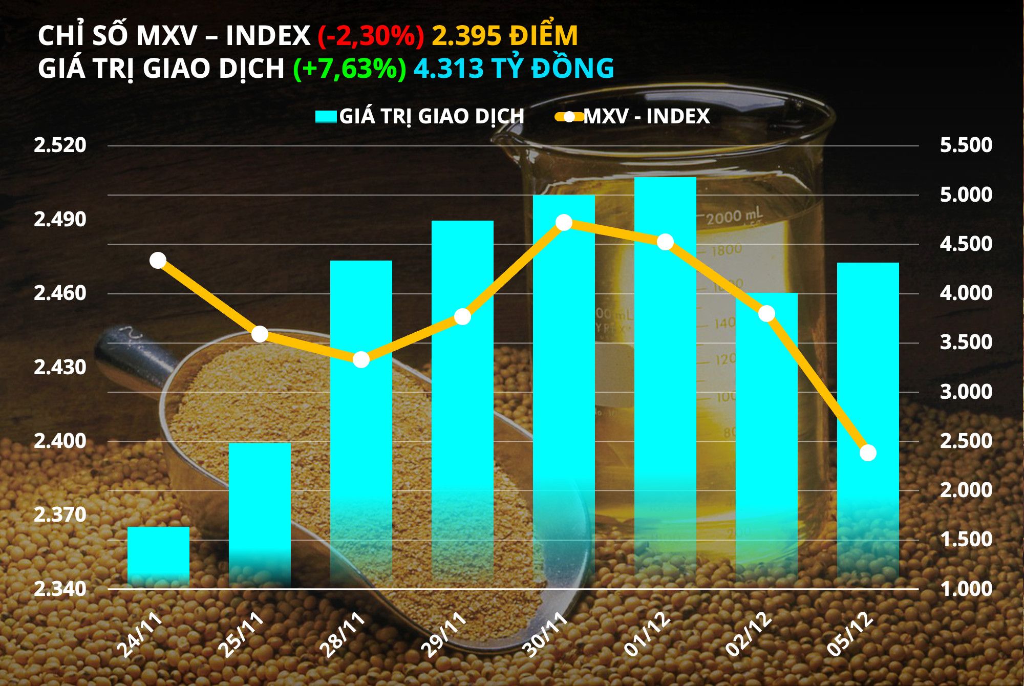 Kết thúc phiên giao dịch đầu tuần ngày 05/12, lực bán áp đảo trên thị trường hàng hoá đã kéo chỉ số MXV-Index giảm 2,3% xuống còn 2.395,4 điểm, ghi nhận phiên giảm điểm thứ 3 liên tiếp và đạt mức thấp nhất kể từ giữa tháng 1 đầu năm nay.