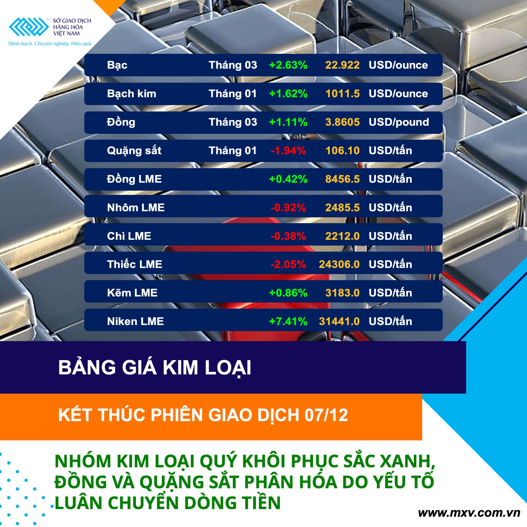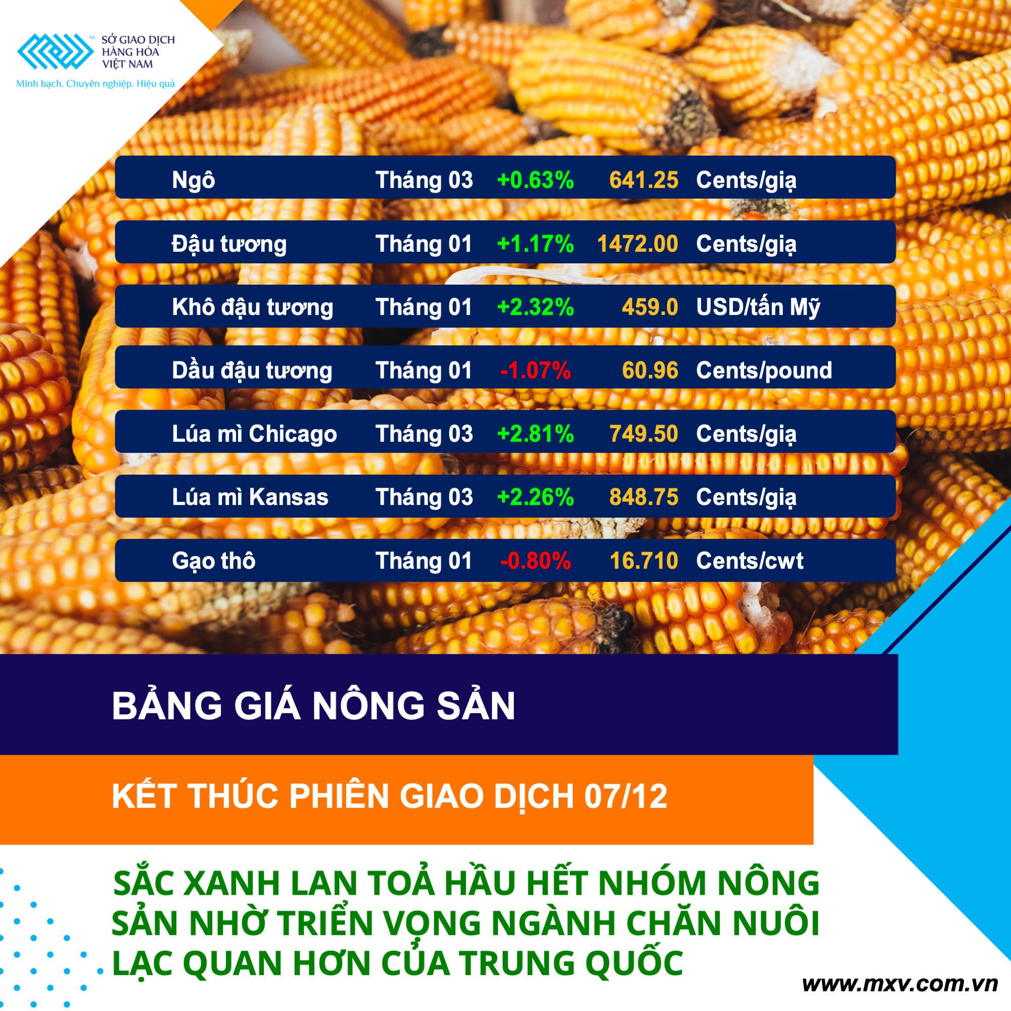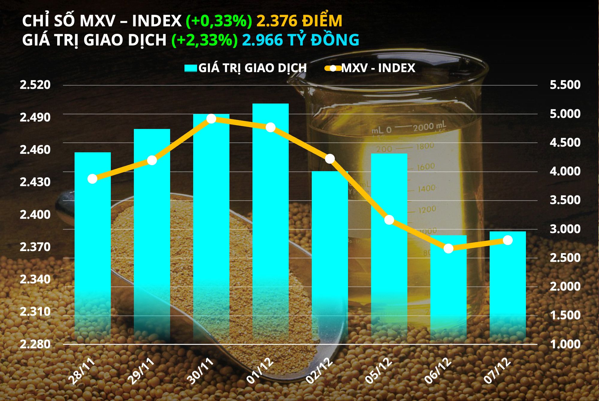 Theo Sở Giao dịch Hàng hóa Việt Nam (MXV), sắc xanh đã quay trở lại bảng giá hàng hoá nguyên liệu thế giới nhờ sự khởi sắc của các mặt hàng nông sản và kim loại. Trong khi đó, xu hướng giảm lại áp đảo đối với nhóm Năng lượng và Nguyên liệu công nghiệp. Chỉ số MXV- Index vẫn đảo chiều tăng nhẹ 0,33% lên 2.376 điểm, kết thúc chuỗi giảm mạnh 4 ngày liên tiếp trước đó.
