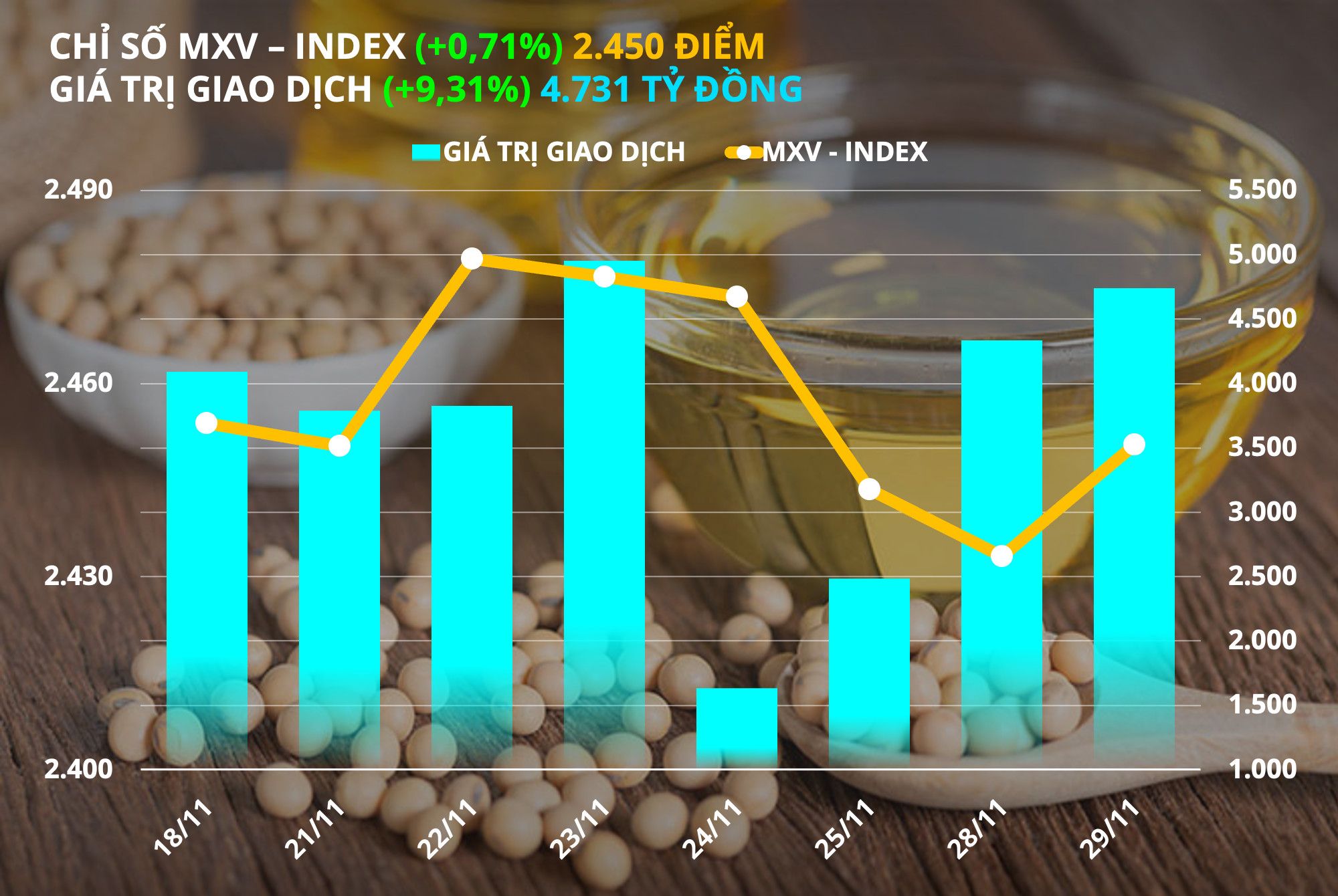 Theo Sở Giao dịch Hàng hoá Việt Nam (MXV), lực mua tích cực quay trở lại thị trường hàng hoá đã hỗ trợ chỉ số MXV- Index tăng 0,71% lên 2.450 điểm, kết thúc chuỗi giảm 4 phiên liên tiếp trước đó.