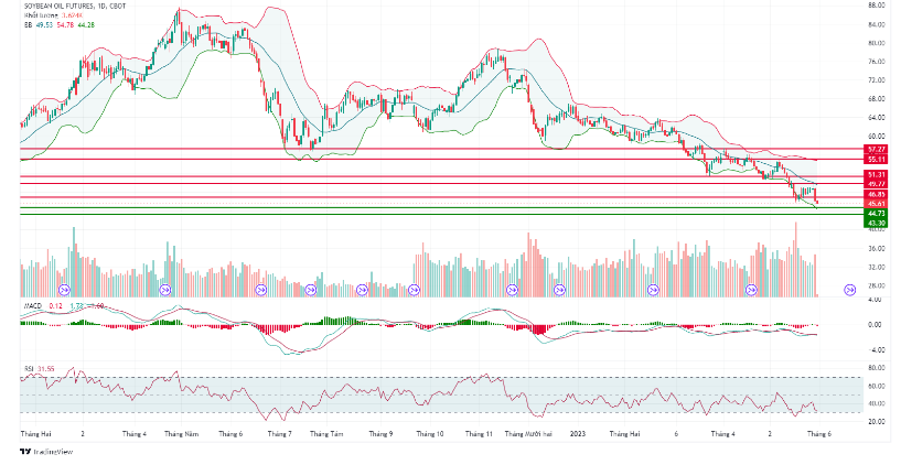 Trong khi đó, dầu đậu tương là mặt hàng giảm mạnh nhất nhóm, với mức giảm gần 2%. Đà giảm của giá dầu đậu vẫn chưa có dấu hiệu dừng lại, khi mà giá dầu thô cũng đang suy yếu trước các áp lực vĩ mô. Bên cạnh đó, khả năng dư thừa nguồn cung dầu cọ ở Malaysia do sản lượng tháng 05 dự kiến tăng 20-30% so với tháng 04 cũng góp phần gây sức ép lên thị trường dầu thực vật.